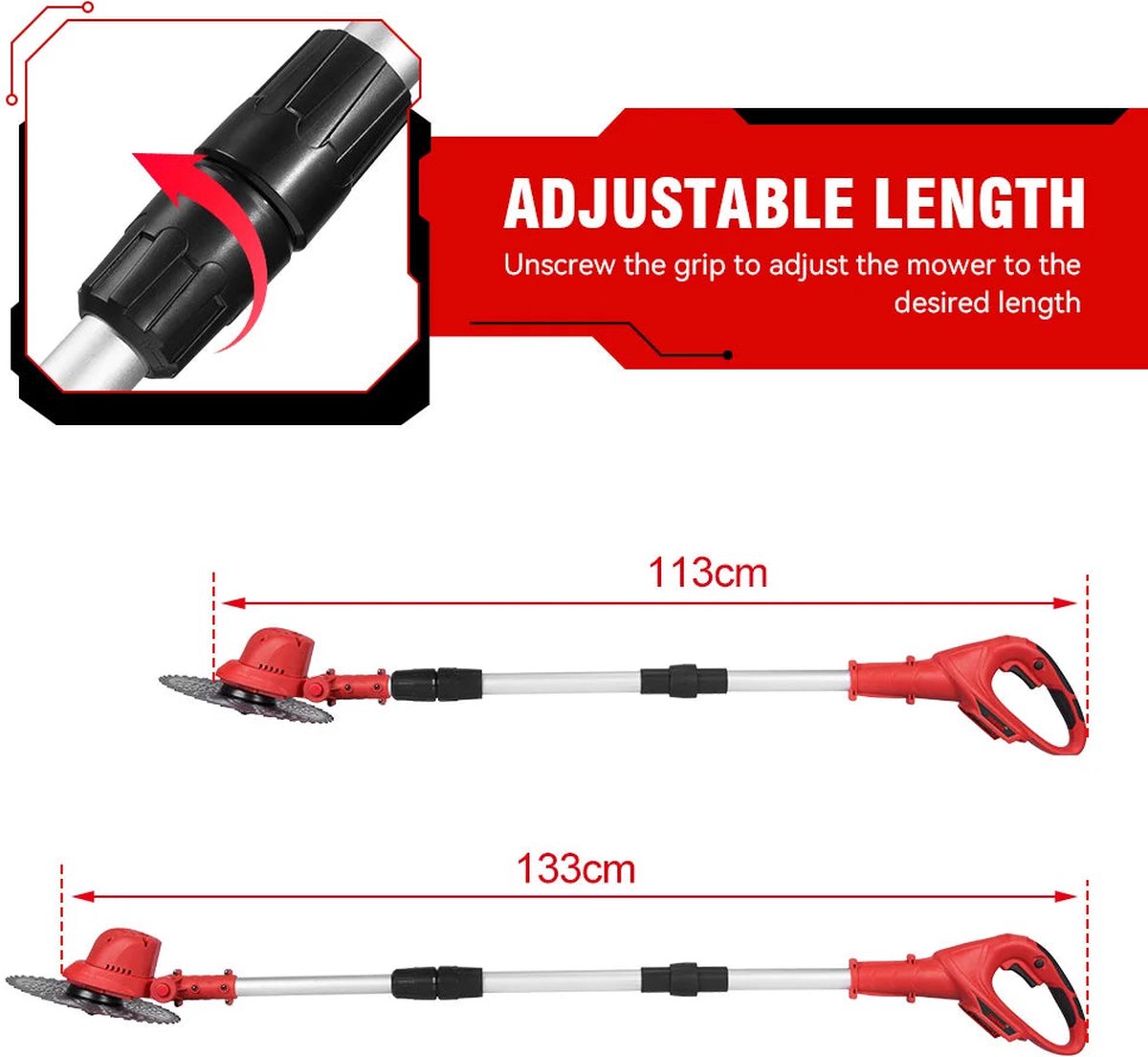 - Lengte Verstelbaar: Pas de lengte van de trimmer eenvoudig aan voor een comfortabele werkhouding, ongeacht uw lengte.