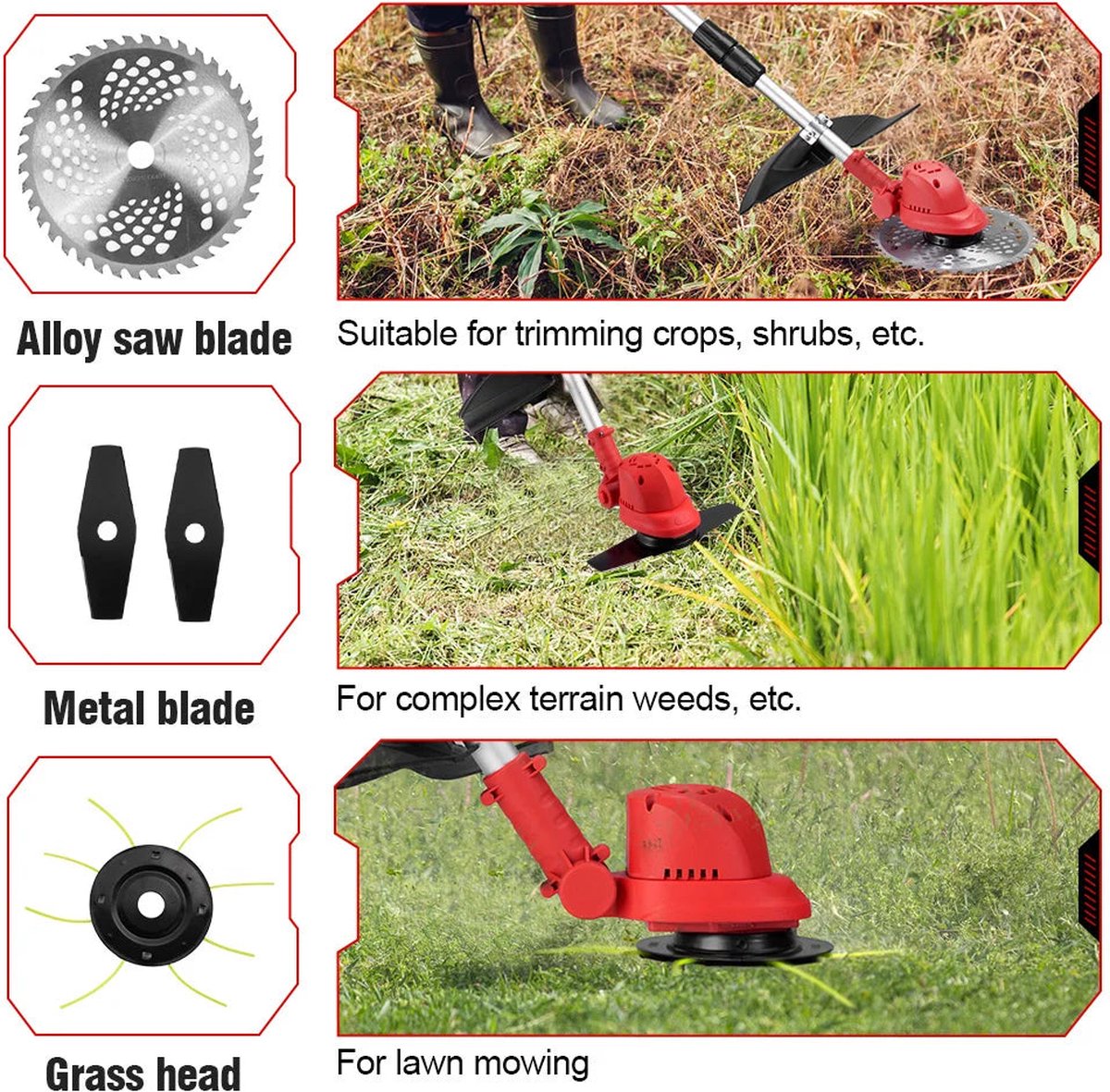 - Snoerloos Ontwerp: Geen gedoe met verlengsnoeren. Geniet van volledige bewegingsvrijheid tijdens het maaien.